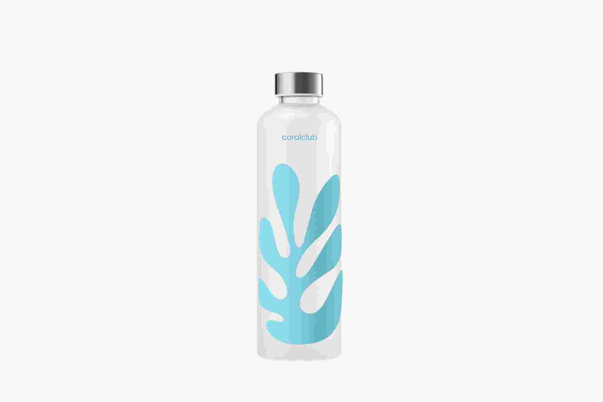 ბოროსილიკატური შუშის წყლის ბოთლი შექმნილია სპეციალურად Coral Club-ის 25 წლის იუბილესთვის.